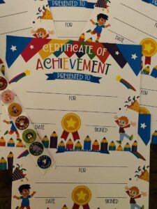 At Nursery we love to recognise the children’s achievements in learning. Wether it be being a great helper with setting things up with a grown